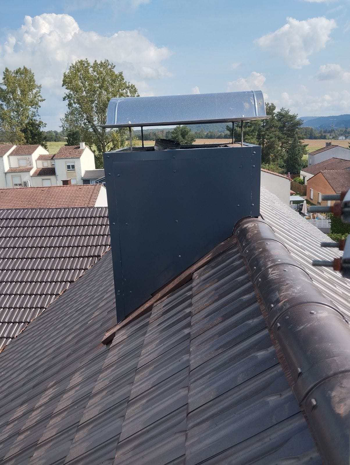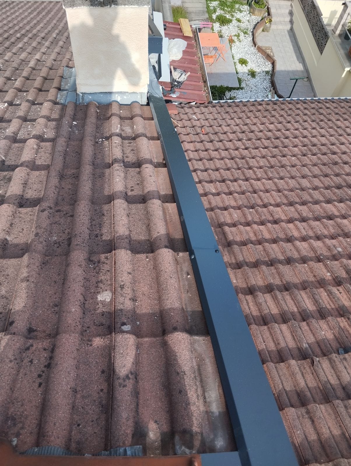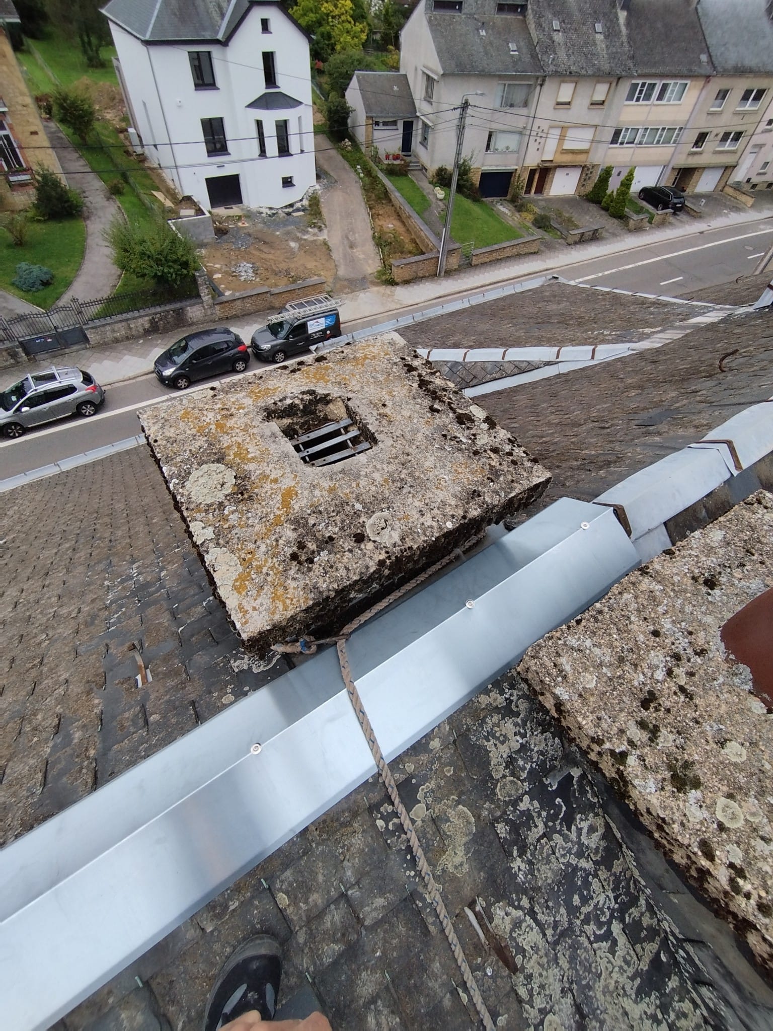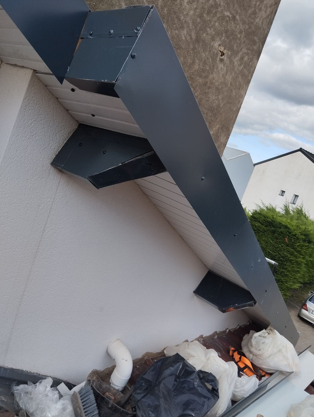 Nous intervenons sur tous vos éléments de toiture : gouttières, chéneaux, et habillages de cheminées de toit en zinc.