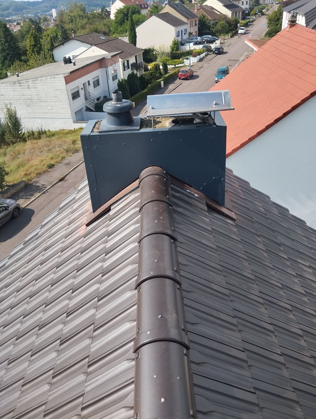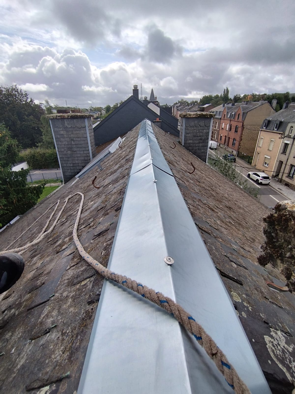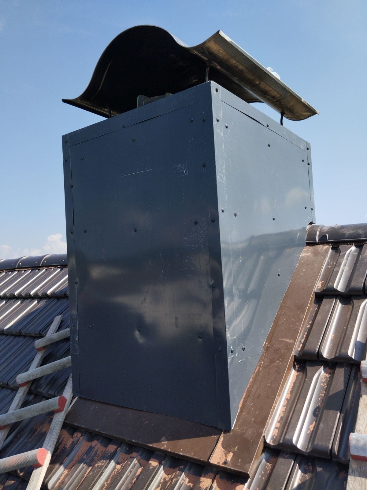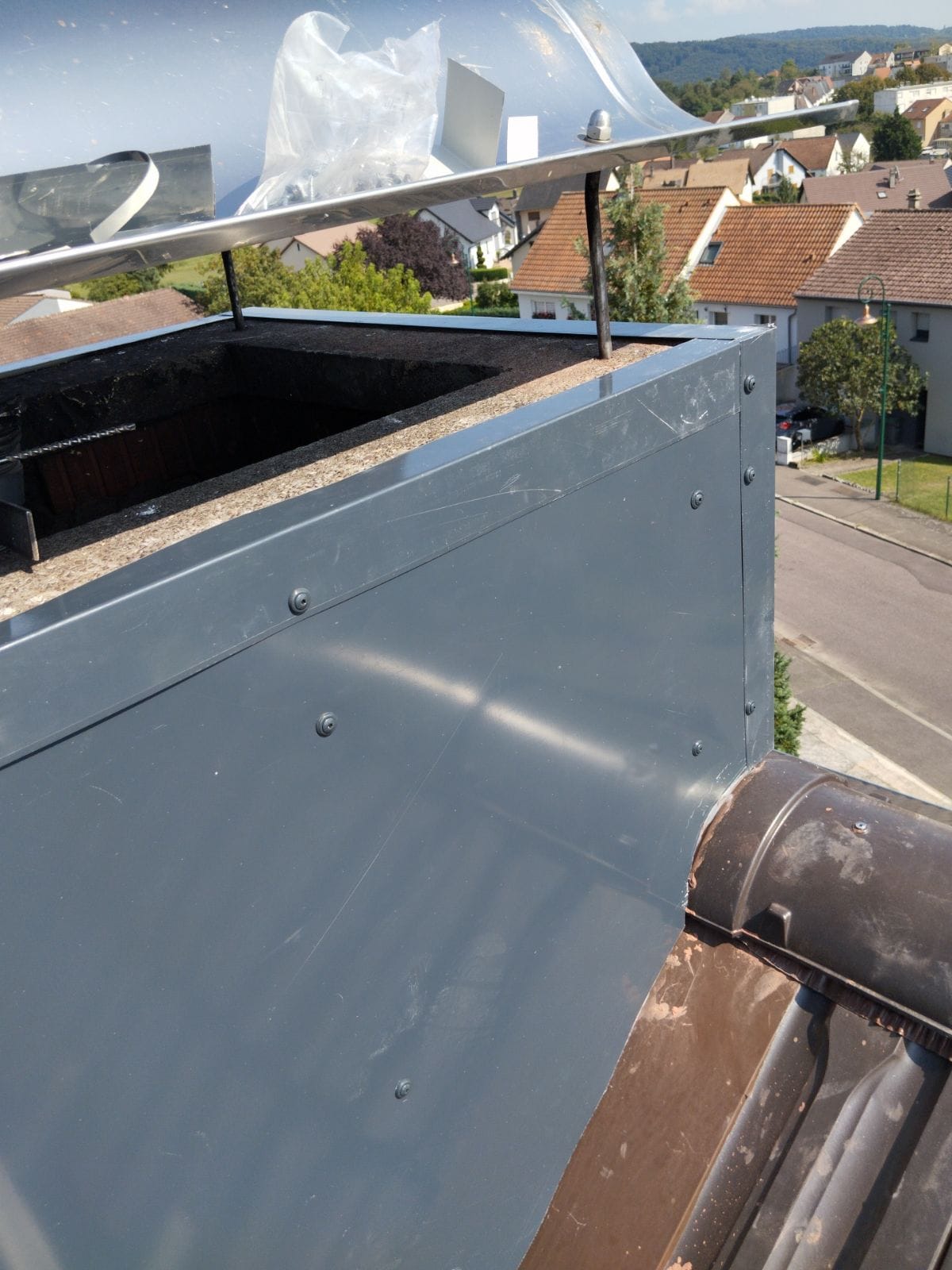 Nous intervenons sur tous vos éléments de toiture : gouttières, chéneaux, et habillages de cheminées de toit en zinc.